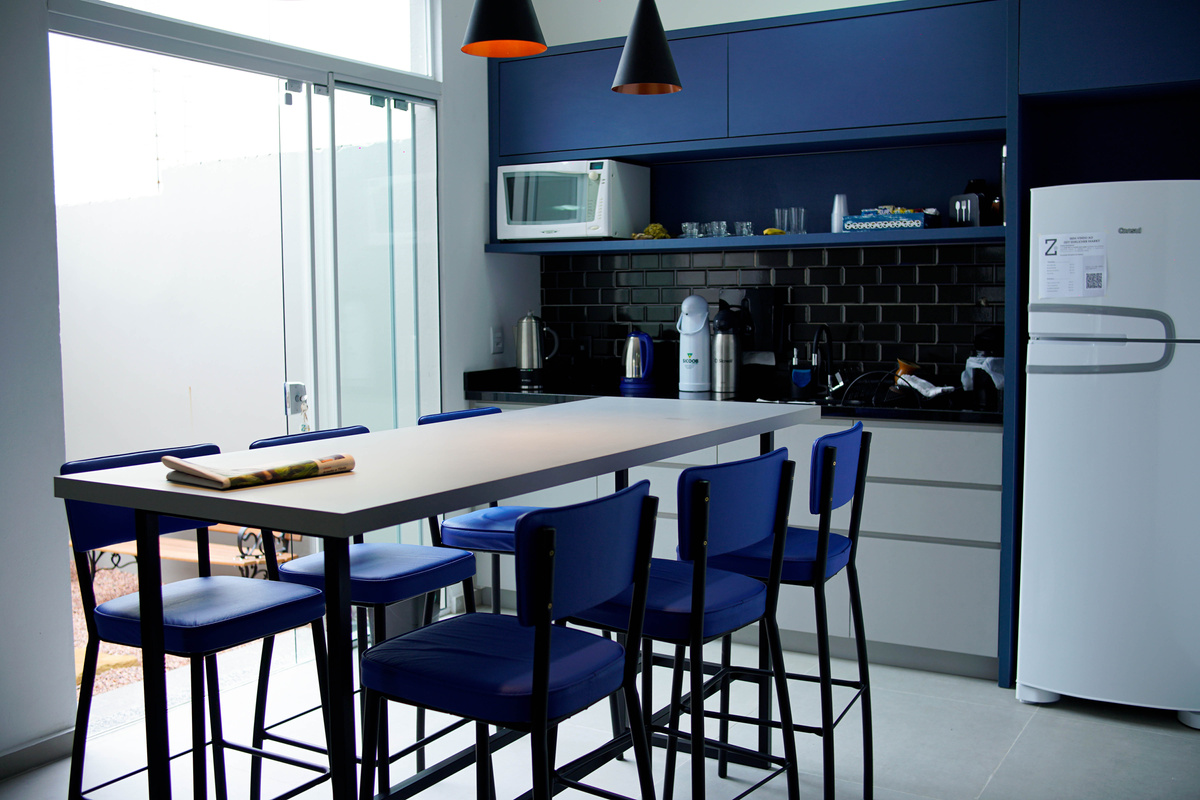 Projetada especialmente para receber profissionais da área da saúde e bem-estar, a Sala Multiprofissional conta área de escritório, ambiente para terapias, maca articuladas e balcão e pia.